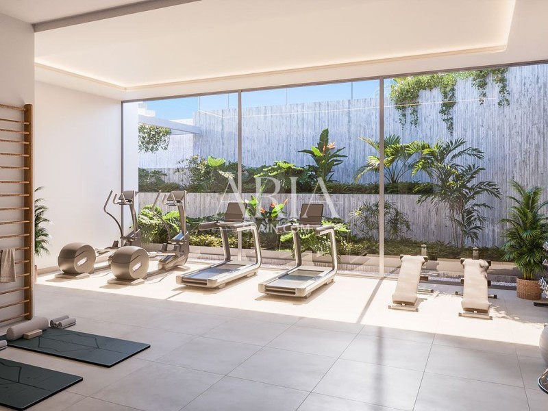 Der Wohnkomplex bietet einen idealen Ort zum ganzjährigen Genießen, mit Freizeit- und Wellnesseinrichtungen wie 3 Gemeinschaftspools, einer Poolbar, einem Spa-Bereich mit Innenpool, Sauna, Dampfbad und kalten Duschen. Zudem gibt es zwei voll ausgestattete Fitnessstudios, zwei Gemeinschaftsräume mit Coworking-Bereichen und prächtige Gartenanlagen.