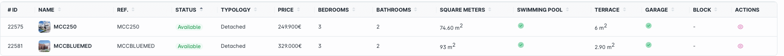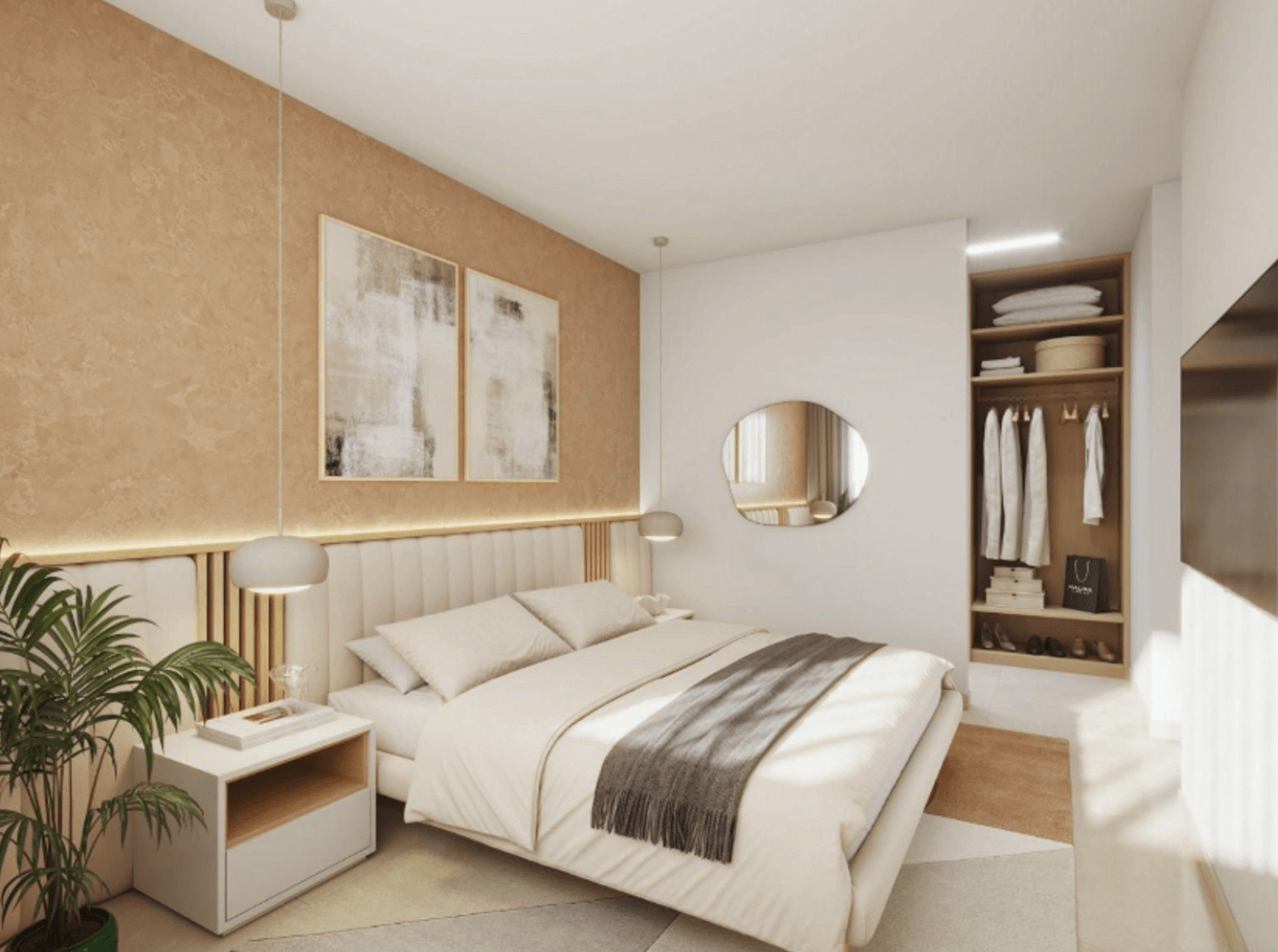 Dom o powierzchni 74,60 m² zbudowany jest na działce o wielkości 250 m². Składa się z 3 przestronnych sypialni, 2 łazienek (w tym jednej en suite) oraz jasnego salonu z otwartą kuchnią. Duże przeszklenia i orientacja południowo-wschodnia zapewniają naturalne doświetlenie przez cały dzień. Wysoka jakość wykończenia obejmuje stolarkę lakierowaną na biało, podłogi z gresu porcelanowego i okna aluminiowe z szybami Climalit. Dom wyposażony jest w preinstalację klimatyzacji kanałowej, ogrzewania basenu oraz zabudowane szafy.