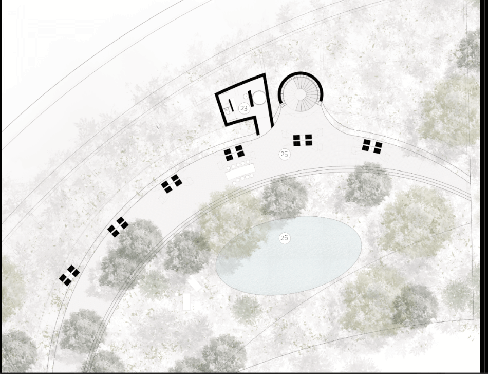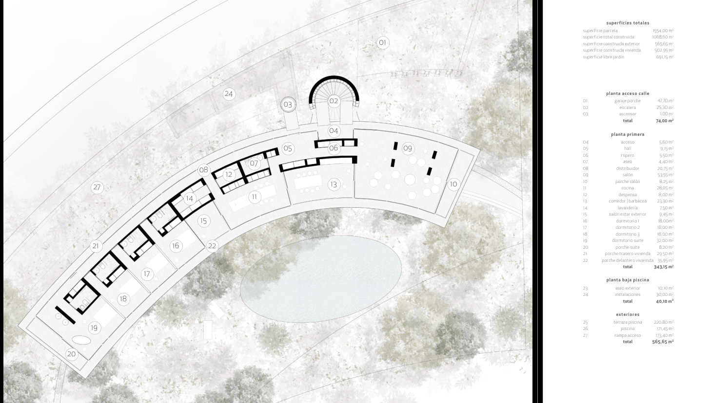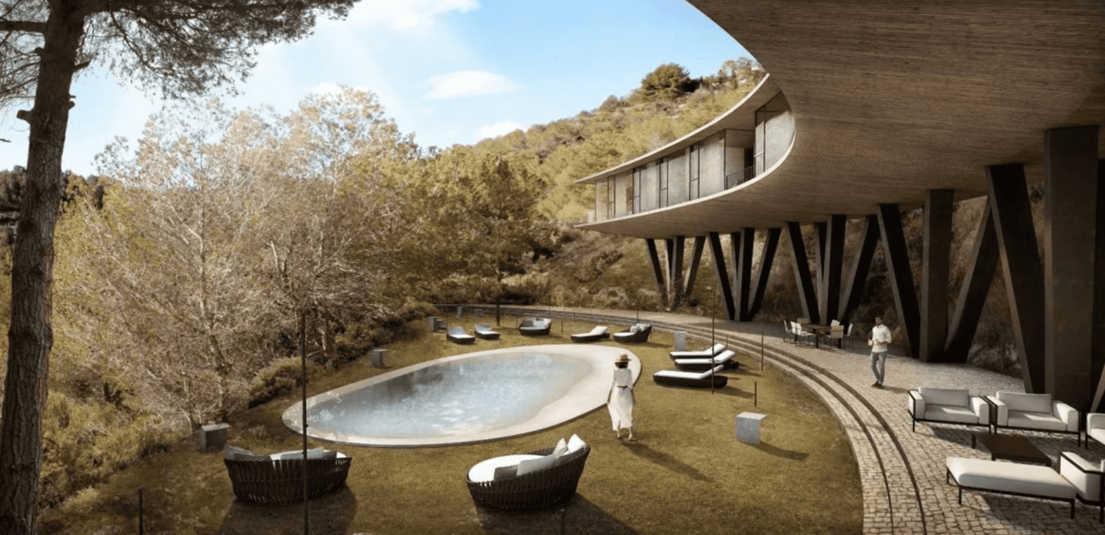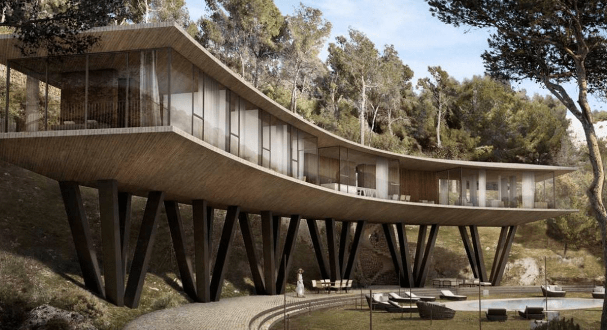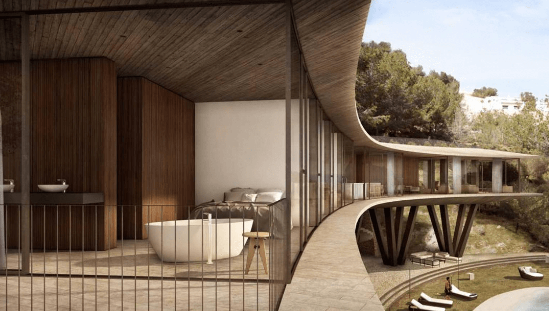 Projekt obejmuje przestronną zabudowę na jednej kondygnacji, z powierzchnią użytkową 380 m² i całkowitą 1.068 m². Willa oferuje cztery duże sypialnie z prywatnymi łazienkami, imponujący salon z jadalnią i panoramicznymi przeszkleniami, które otwierają przestrzeń na niesamowite widoki. Dzięki unikalnej architekturze opartej na pięciu filarach, a także minimalistycznemu designowi z wykorzystaniem naturalnych materiałów, takich jak kamień i beton, dom doskonale komponuje się z krajobrazem. Prywatna tarasowa część wypoczynkowa i sypialnia główna z własną strefą relaksu dodatkowo podkreślają wyjątkowy charakter tej nieruchomości.