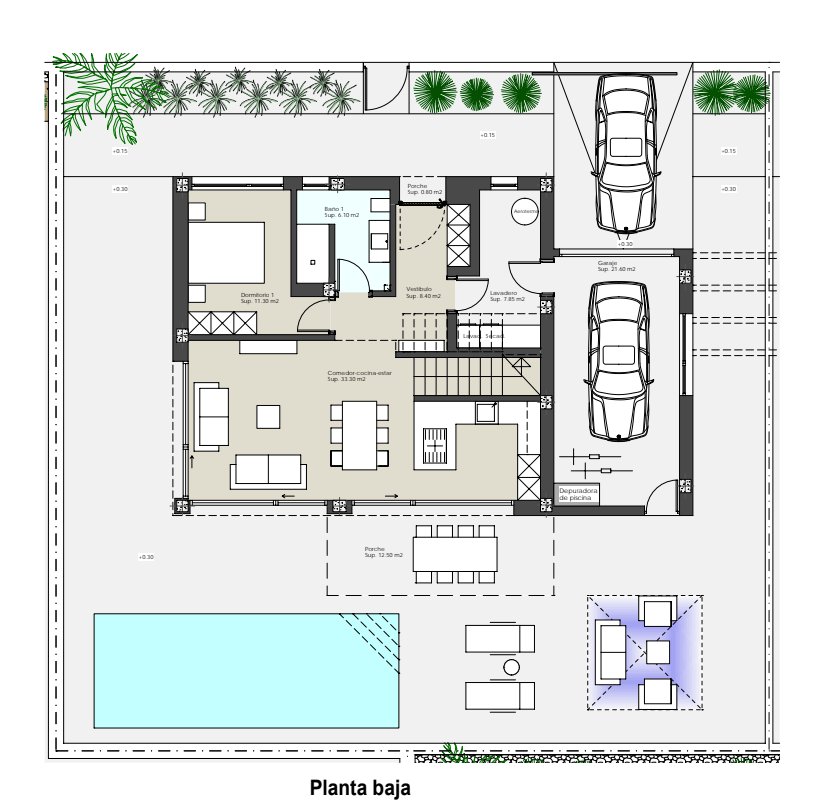 Wille wyposażone są zazwyczaj w trzy sypialnie, z możliwością rozbudowy do czterech, trzy łazienki, otwartą kuchnię połączoną z jadalnią i salonem oraz przestronne przeszklenia, które zapewniają dużo naturalnego światła i płynne przejście na taras z basenem. Wysoki standard wykończenia, klimatyzacja kanałowa, systemy nawadniania ogrodu i miejsca parkingowe sprawiają, że dom spełnia wymagania najbardziej wymagających klientów planujących kupno domu w Hiszpanii lub kupno nieruchomości w Hiszpanii.