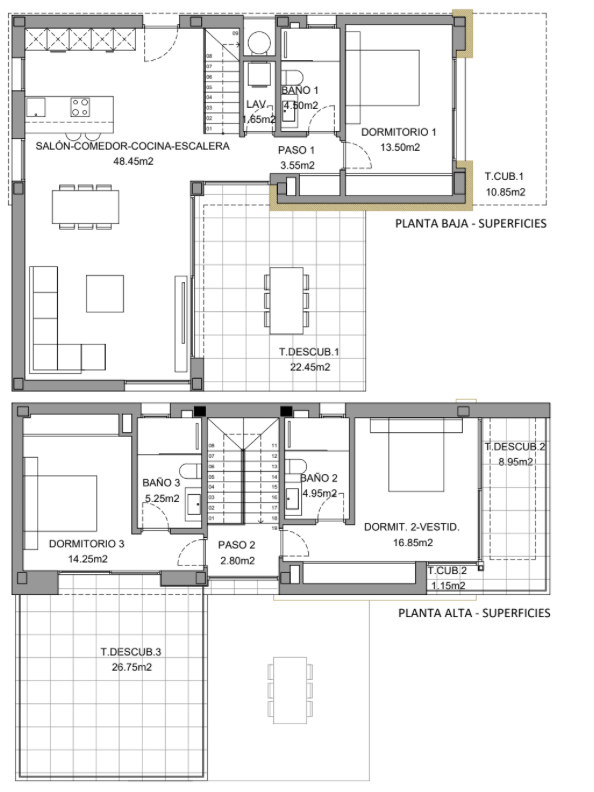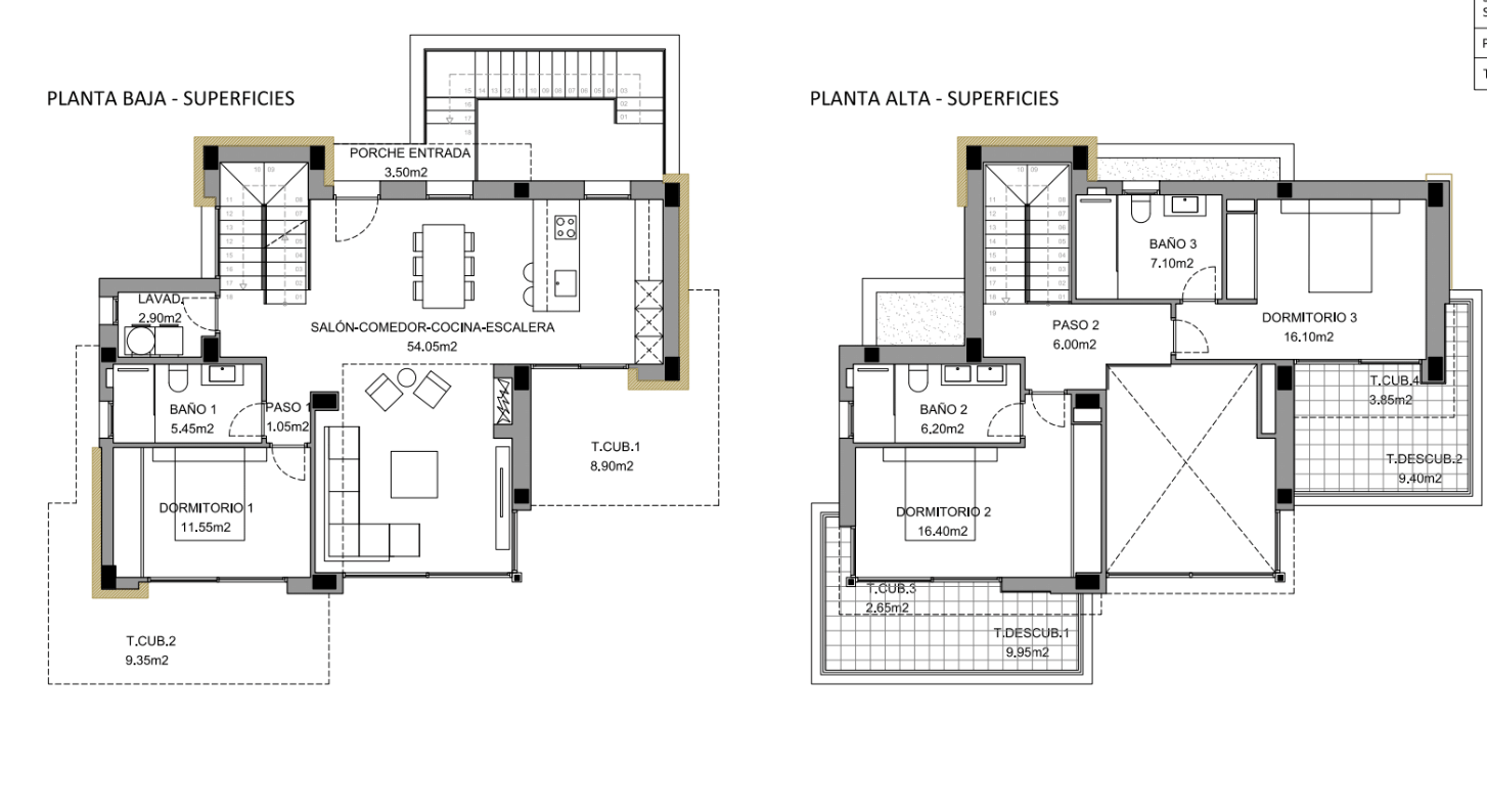 Te nowoczesne wille na sprzedaż w Finestrat wyróżniają się wysokiej klasy wykończeniem, wykorzystaniem materiałów premium oraz zaawansowaną automatyką domową, która umożliwia zarządzanie oświetleniem, klimatyzacją i bezpieczeństwem za pomocą jednego kliknięcia. Wybrane modele posiadają również piwnicę, którą można zaaranżować jako siłownię, strefę rozrywki, biuro lub dodatkową przestrzeń według indywidualnych potrzeb.