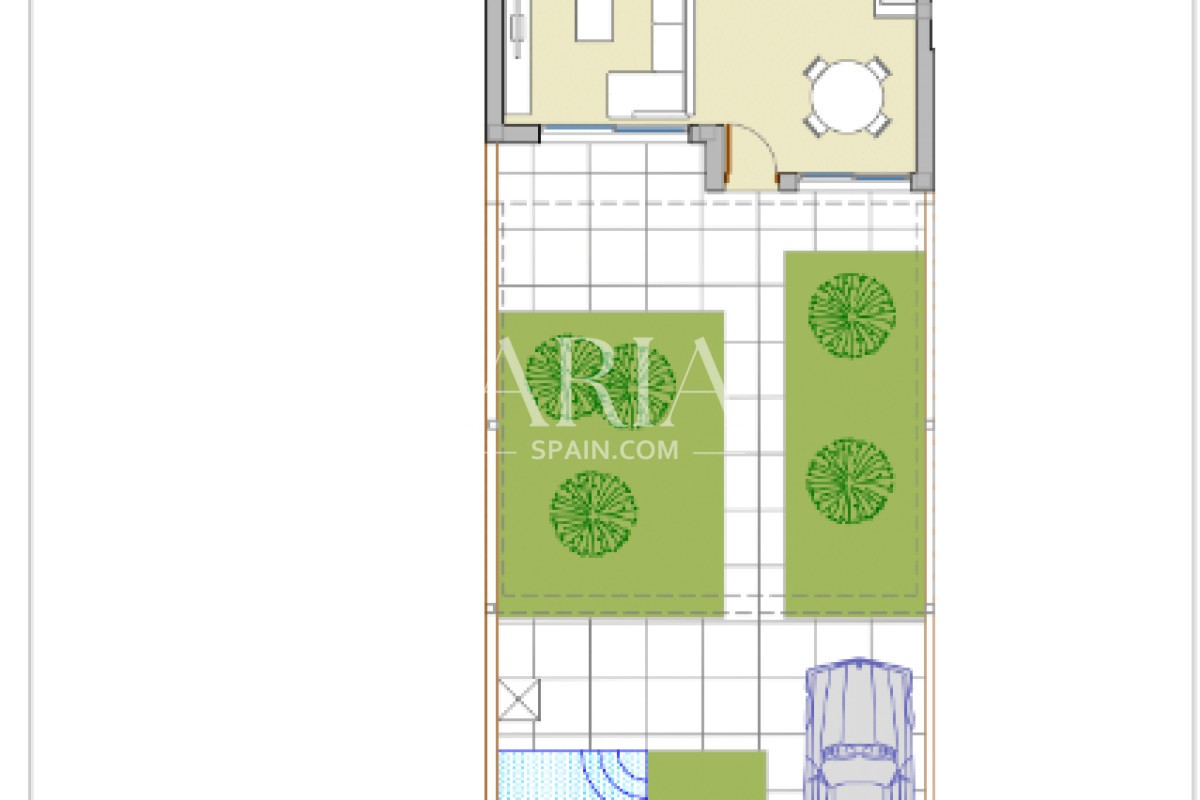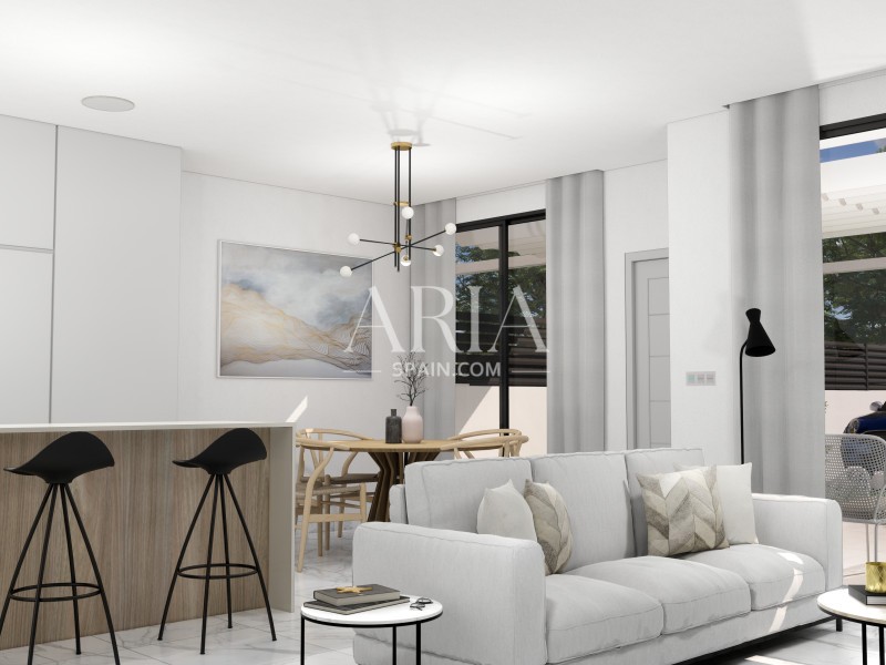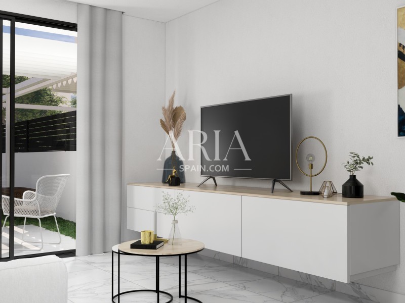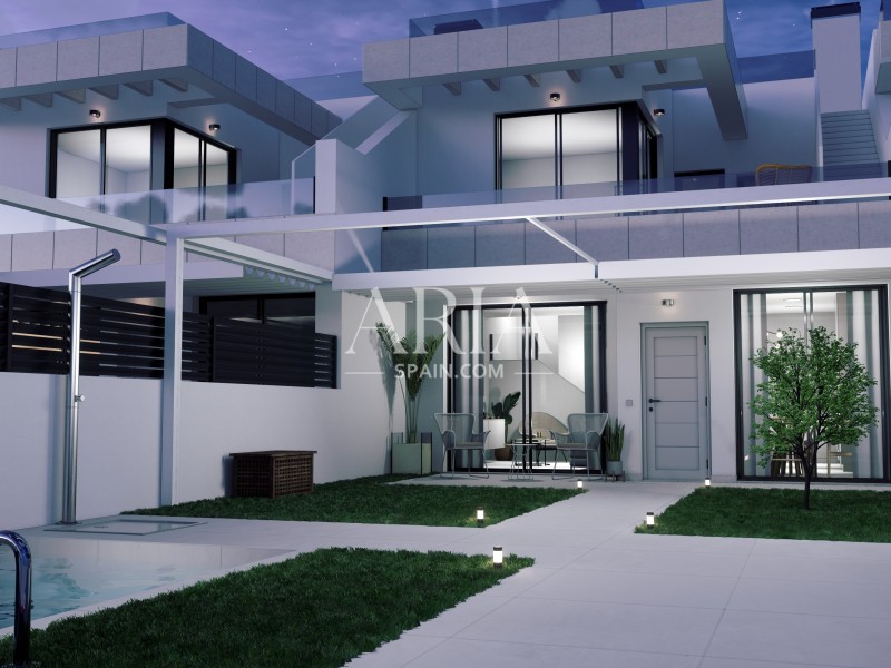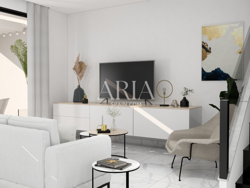 Atrakcyjne domy szeregowe, rozłożone na trzech kondygnacjach, oferują nowoczesną aranżację przestrzeni z otwartą kuchnią, salonem i jadalnią na parterze, wraz z sypialnią typu suite i toaletą. Na pierwszym piętrze znajdują się 2 sypialnie z łazienkami, z których jedna prowadzi na przestronny taras o powierzchni ponad 18 m². Dodatkowo, na najwyższym poziomie znajduje się solarium o powierzchni prawie 50 m² (do wyboru). Istnieje również możliwość posiadania prywatnego basenu.
