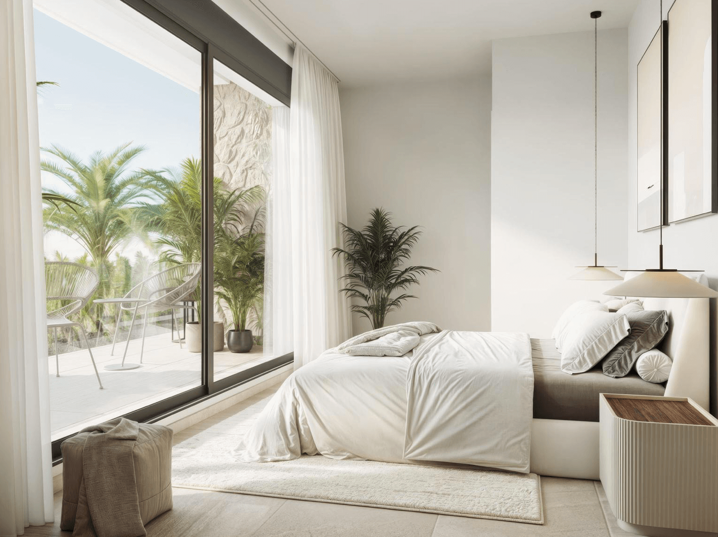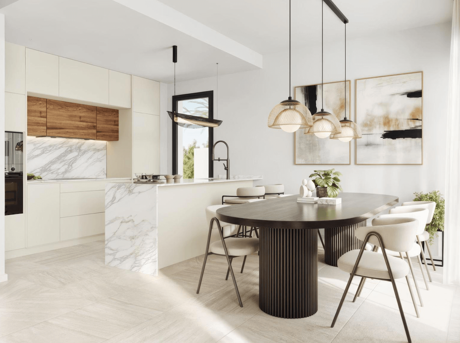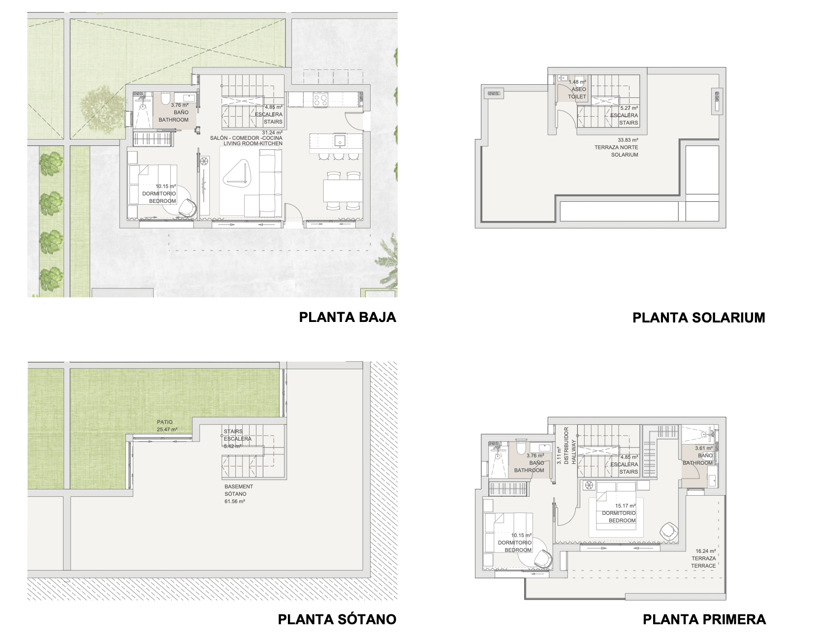 Każda willa została zaprojektowana z myślą o maksymalnej wygodzie i nowoczesnym stylu życia. Do dyspozycji mieszkańców pozostają trzy przestronne sypialnie z wbudowanymi szafami, trzy eleganckie łazienki, jasny salon z jadalnią oraz kuchnia na otwartym planie. Duże przeszklenia otwierają wnętrze na prywatny ogród z tarasem i basenem, a dodatkową przestrzeń do relaksu oferuje solarium na dachu z możliwością instalacji jacuzzi i letniej kuchni. W cenie znajduje się także piwnica, idealna do stworzenia siłowni, sali kinowej, biura lub dodatkowej sypialni.