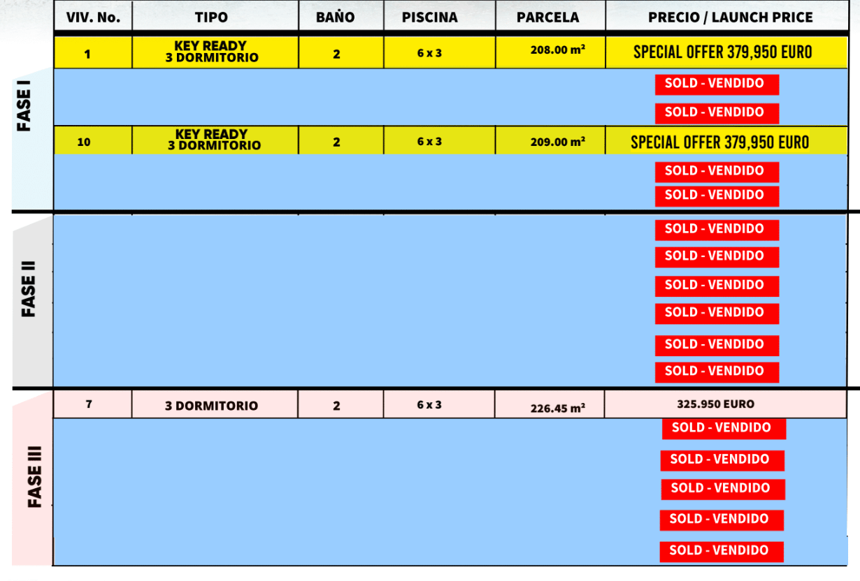 Każda nieruchomość obejmuje trzy sypialnie (główna z łazienką en-suite), dodatkową łazienkę rodzinną, w pełni wyposażoną kuchnię w stylu open space połączoną z salonem i jadalnią, a także pomieszczenie gospodarcze. Na zewnątrz znajduje się prywatny basen z prysznicem, miejsce do wypoczynku oraz tarasy wokół domu, które idealnie sprawdzą się do spędzania czasu na świeżym powietrzu. Dodatkowym atutem jest duże solarium na dachu, idealne na letnią kuchnię, strefę relaksu lub jacuzzi.