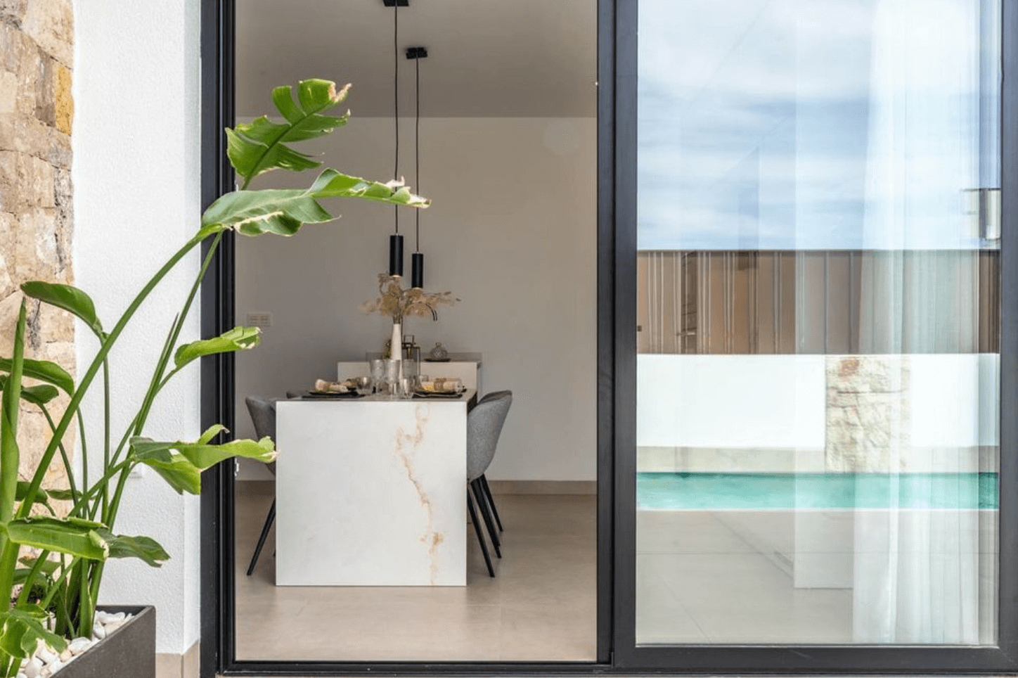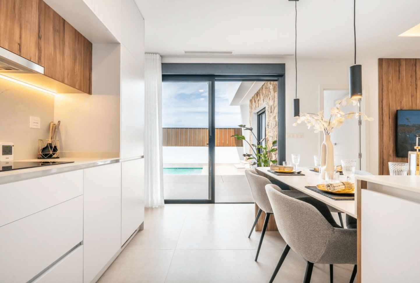 Nowoczesne, parterowe wille położone w spokojnej części Roldán w regionie Murcja to idealna propozycja dla osób poszukujących luksusowych, nowoczesnych nieruchomości w Hiszpanii. Każdy dom został zaprojektowany w stylu współczesnym z eleganckimi kamiennymi akcentami, oferując prywatny basen, przestronny taras oraz duże solarium na dachu. Wille wyróżniają się przemyślanym układem pomieszczeń, wysokimi sufitami w strefie kuchennej oraz licznymi przeszkleniami, które zapewniają maksymalną ilość naturalnego światła i kontakt z otaczającą zielenią.