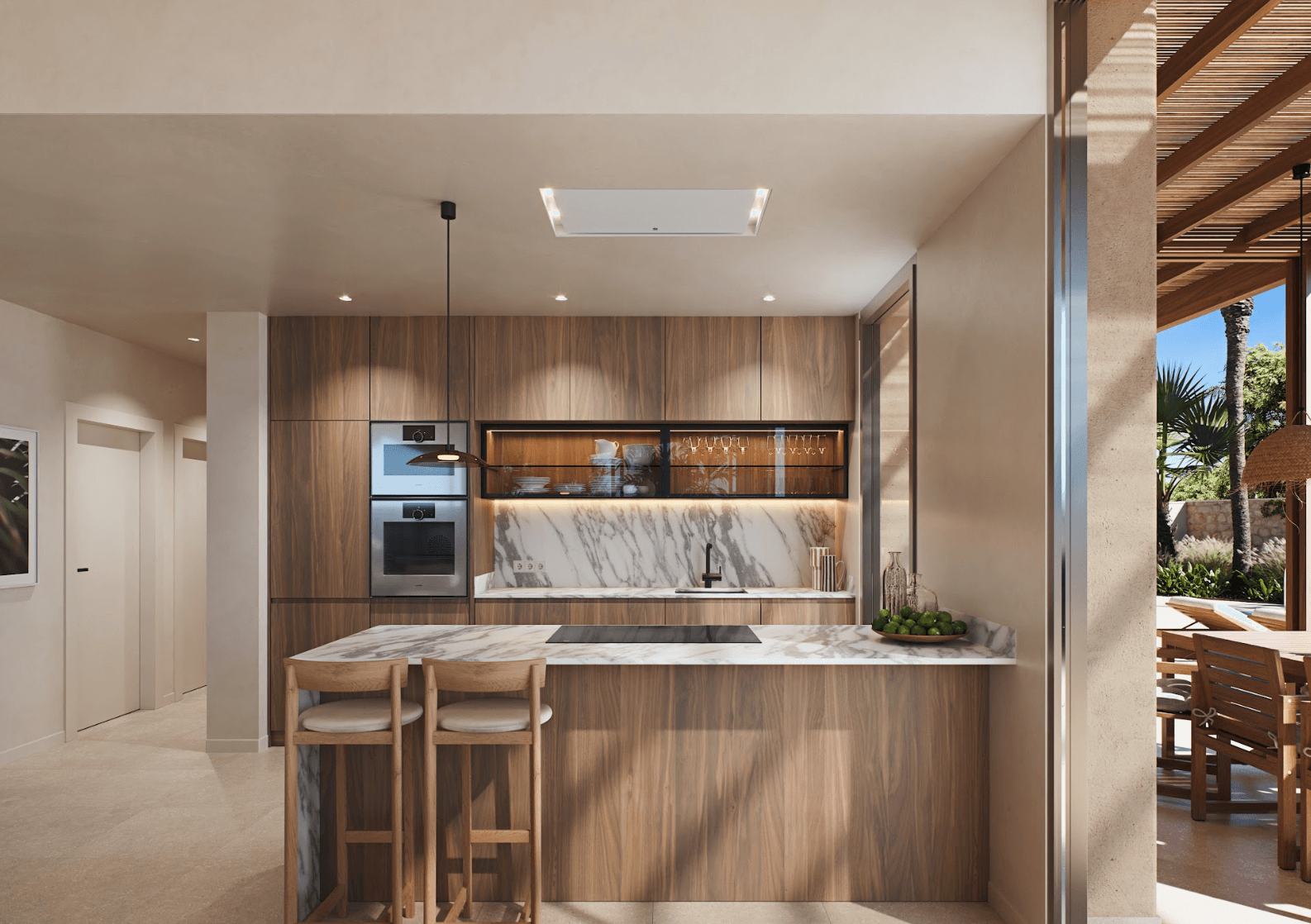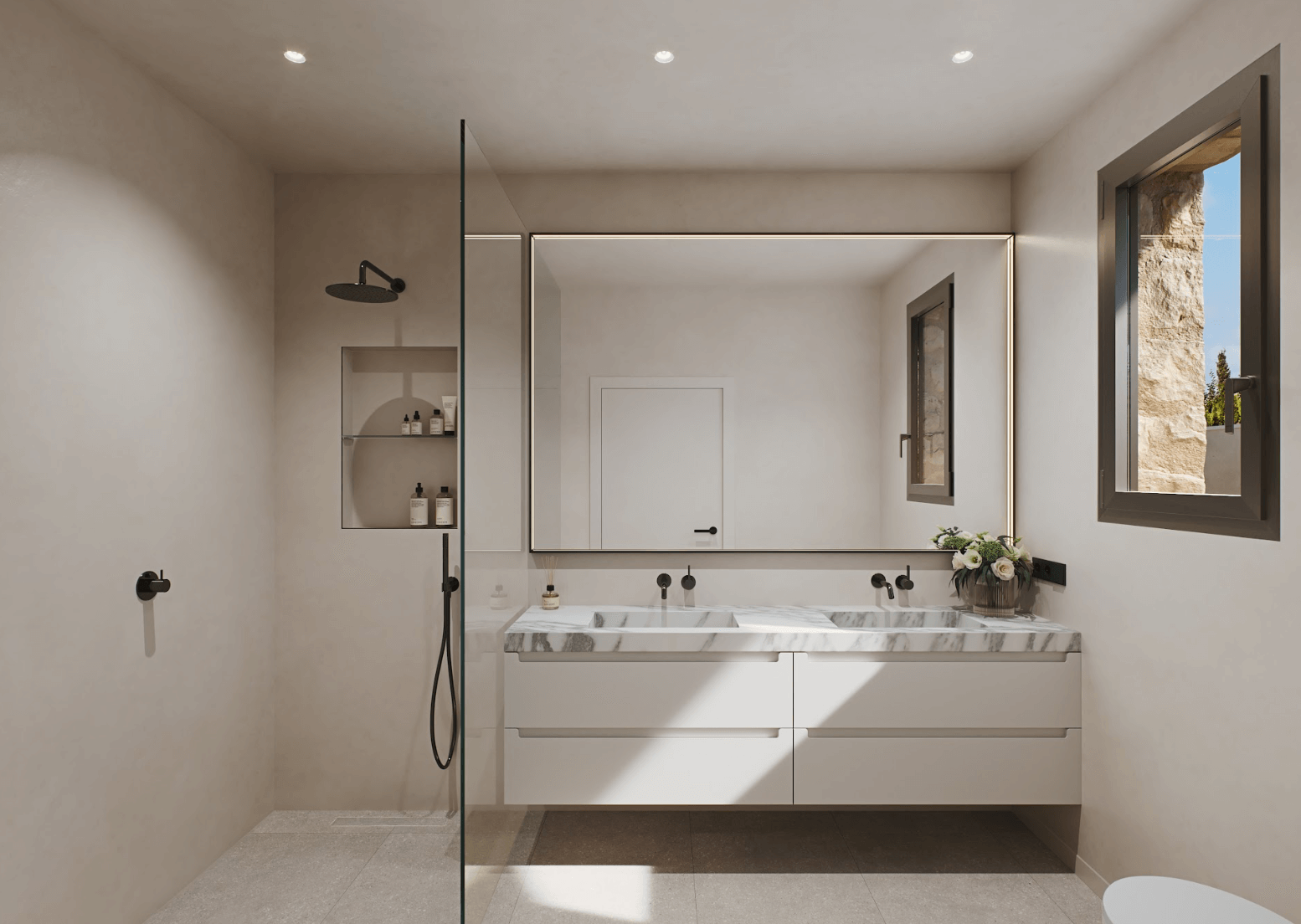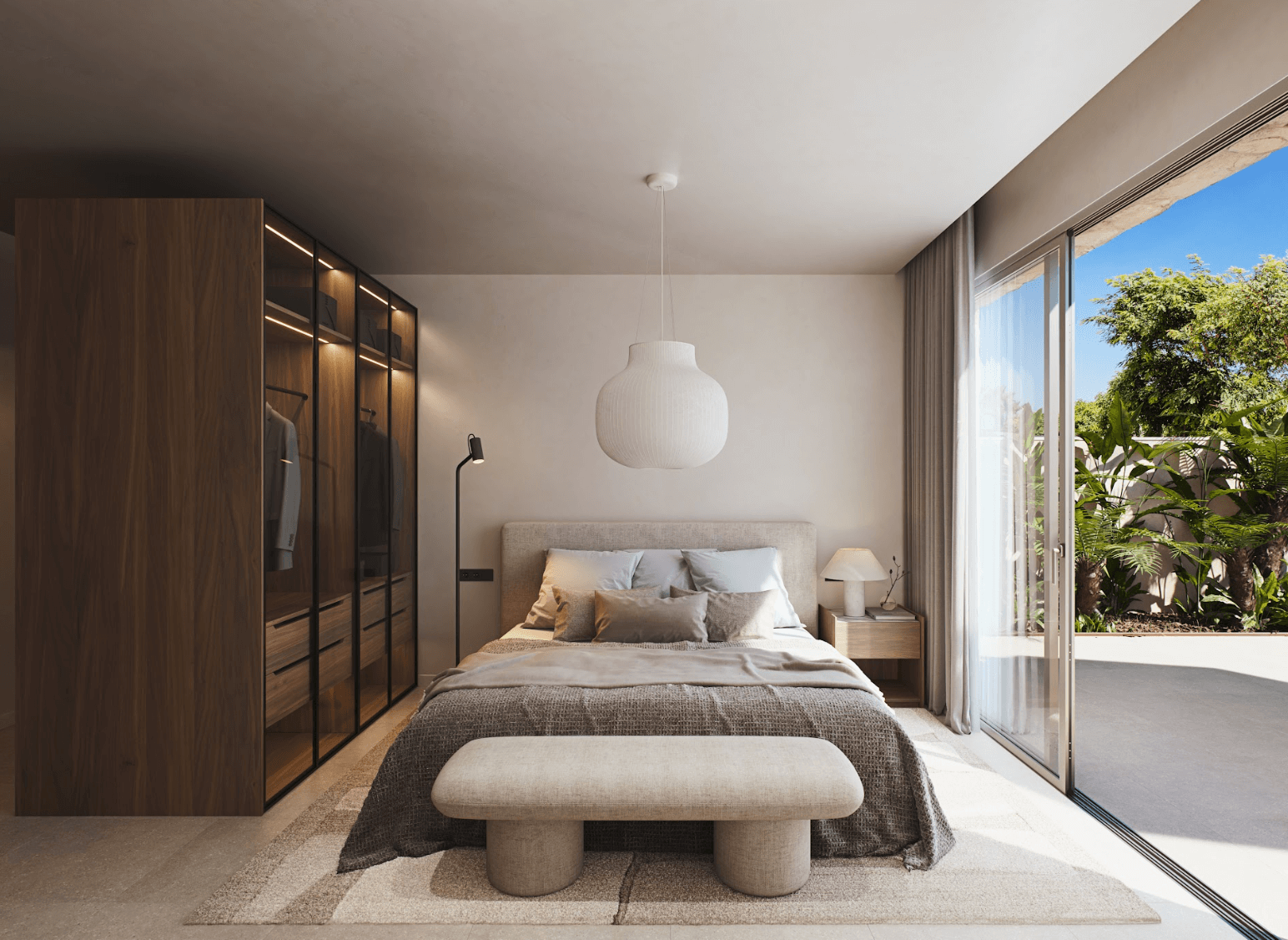 W nieruchomości znajdują się 3 sypialnie, w tym główna z prywatną łazienką typu en-suite, oraz dodatkowa łazienka dla gości i pralnia. W ogrodzie zaprojektowano prywatny basen (8×3 m) otoczony roślinnością śródziemnomorską, a na dachu znajduje się solarium o powierzchni 68 m², z którego można podziwiać panoramiczne widoki na morze i cieszyć się słońcem przez cały rok. Ta luksusowa nieruchomość w Hiszpanii została wyposażona w liczne udogodnienia: oświetlenie LED wewnętrzne i zewnętrzne, system klimatyzacji, podwójne szyby dla lepszej izolacji, system bezpieczeństwa z kamerami oraz automatyczne nawadnianie ogrodu. Wszystko to zapewnia pełen komfort i bezpieczeństwo mieszkańców.