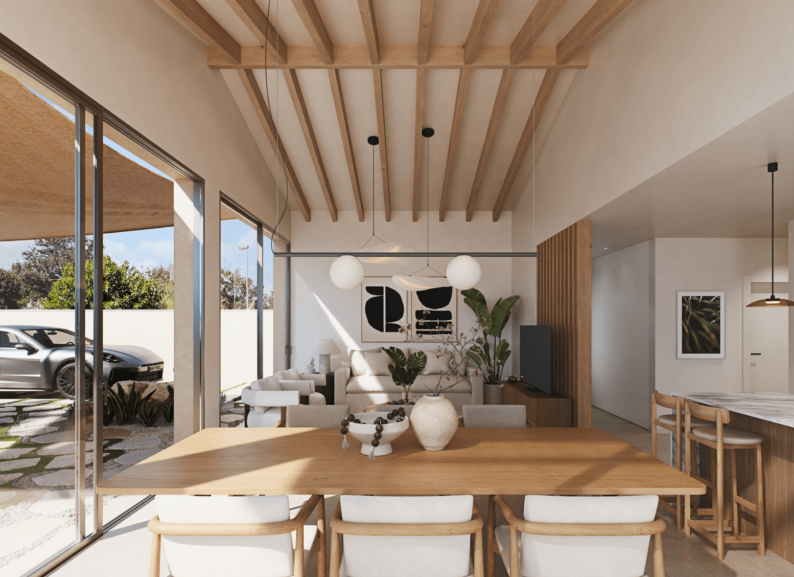 Willa znajduje się na działce o powierzchni 522 m² i oferuje 130 m² powierzchni zabudowy na jednym poziomie, co zapewnia komfortowy układ i funkcjonalność. Przestronny salon z jadalnią i dużymi przeszkleniami tworzy harmonijne połączenie z ogrodem i tarasem, wprowadzając do wnętrza mnóstwo naturalnego światła. W pełni wyposażona, nowoczesna kuchnia wykonana została z najwyższej jakości materiałów i sprzętów AGD.