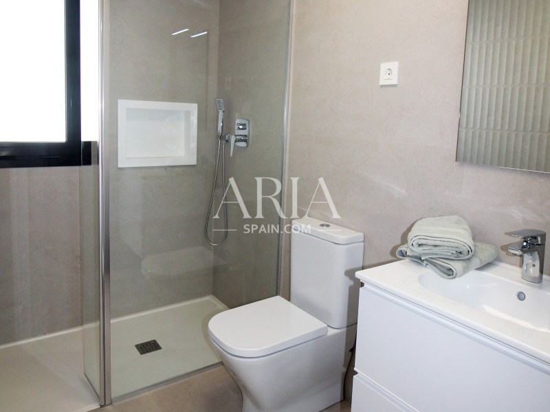 Les maisons disposent de 3 chambres, 2 salles de bains, une cuisine ouverte, un salon avec accès direct à l’agréable zone de la piscine, une terrasse à l’arrière avec place de parking, une terrasse et un grand solarium sur le toit.