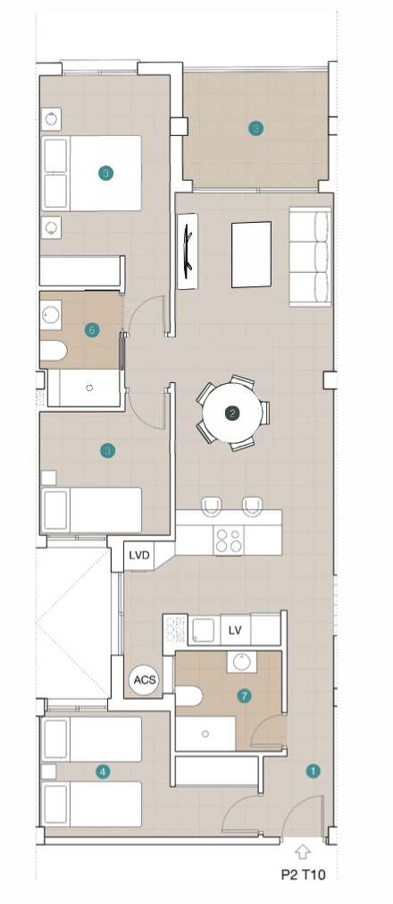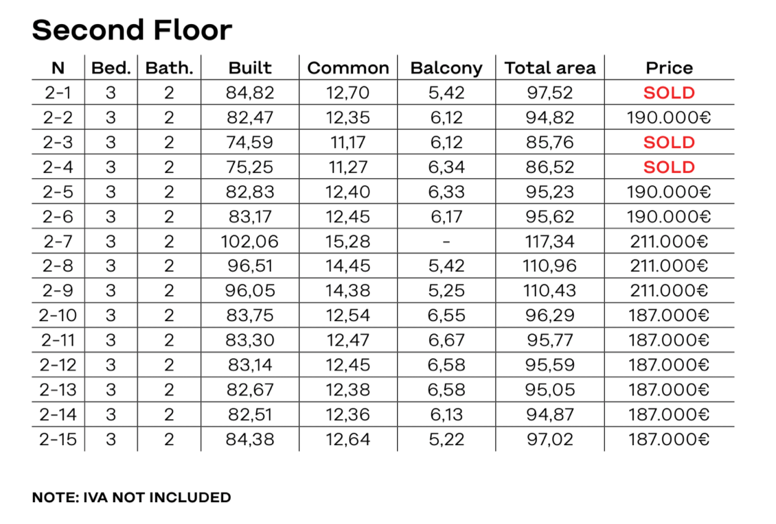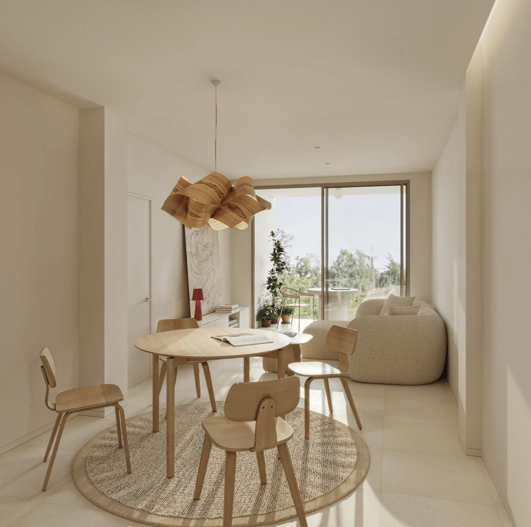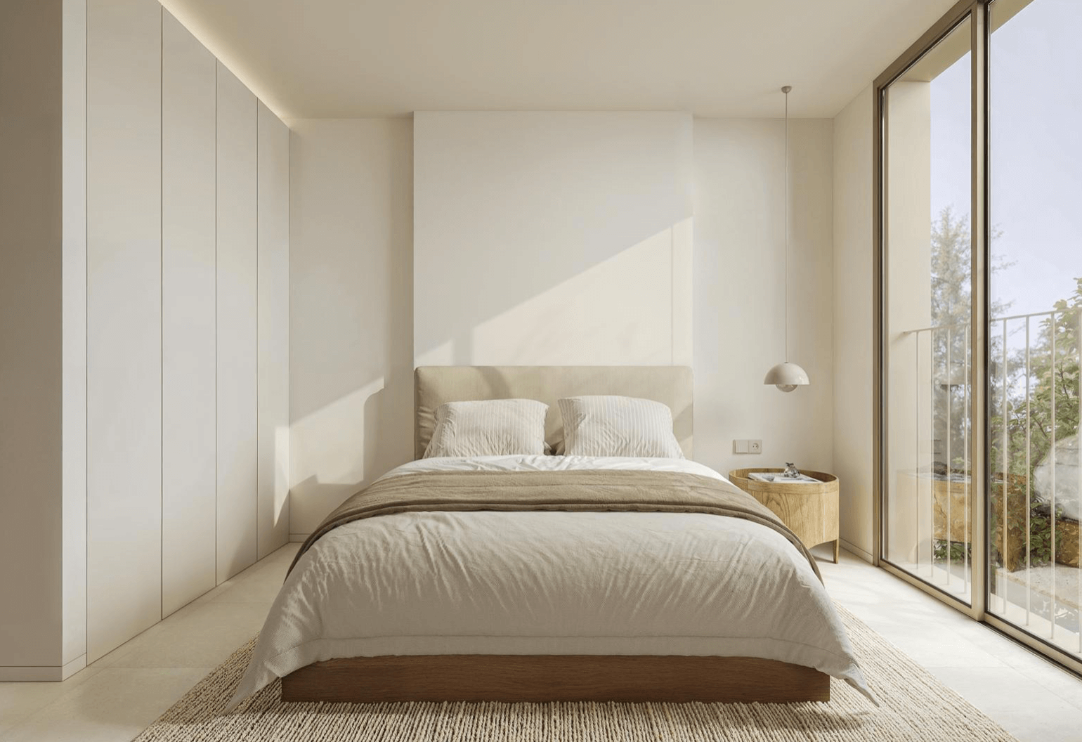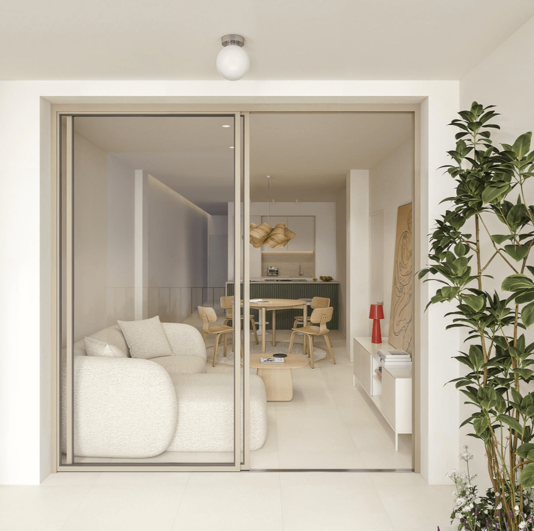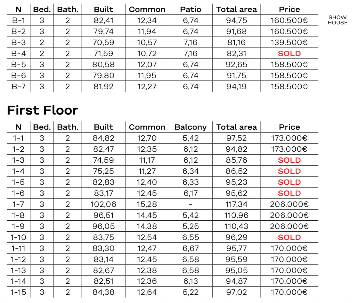 Lejlighederne er komfortabelt og funktionelt indrettet og er lige velegnede til ferie, permanent ophold eller som investeringsejendomme i Spanien. Lejlighederne har to eller tre soveværelser, to badeværelser, en rummelig stue og et fuldt udstyret køkken. Hver lejlighed har en privat gårdhave, og prisen inkluderer parkering og opbevaring. Takket være den gunstige beliggenhed og de store vinduer er interiøret lyst og badet i naturligt lys hele dagen.