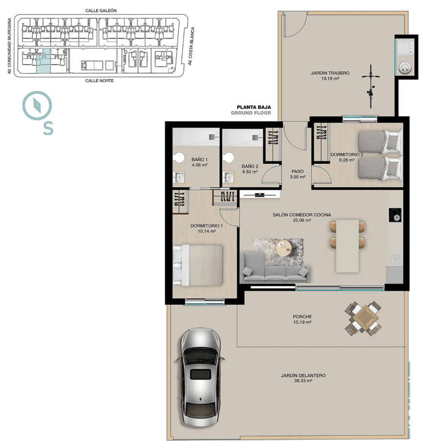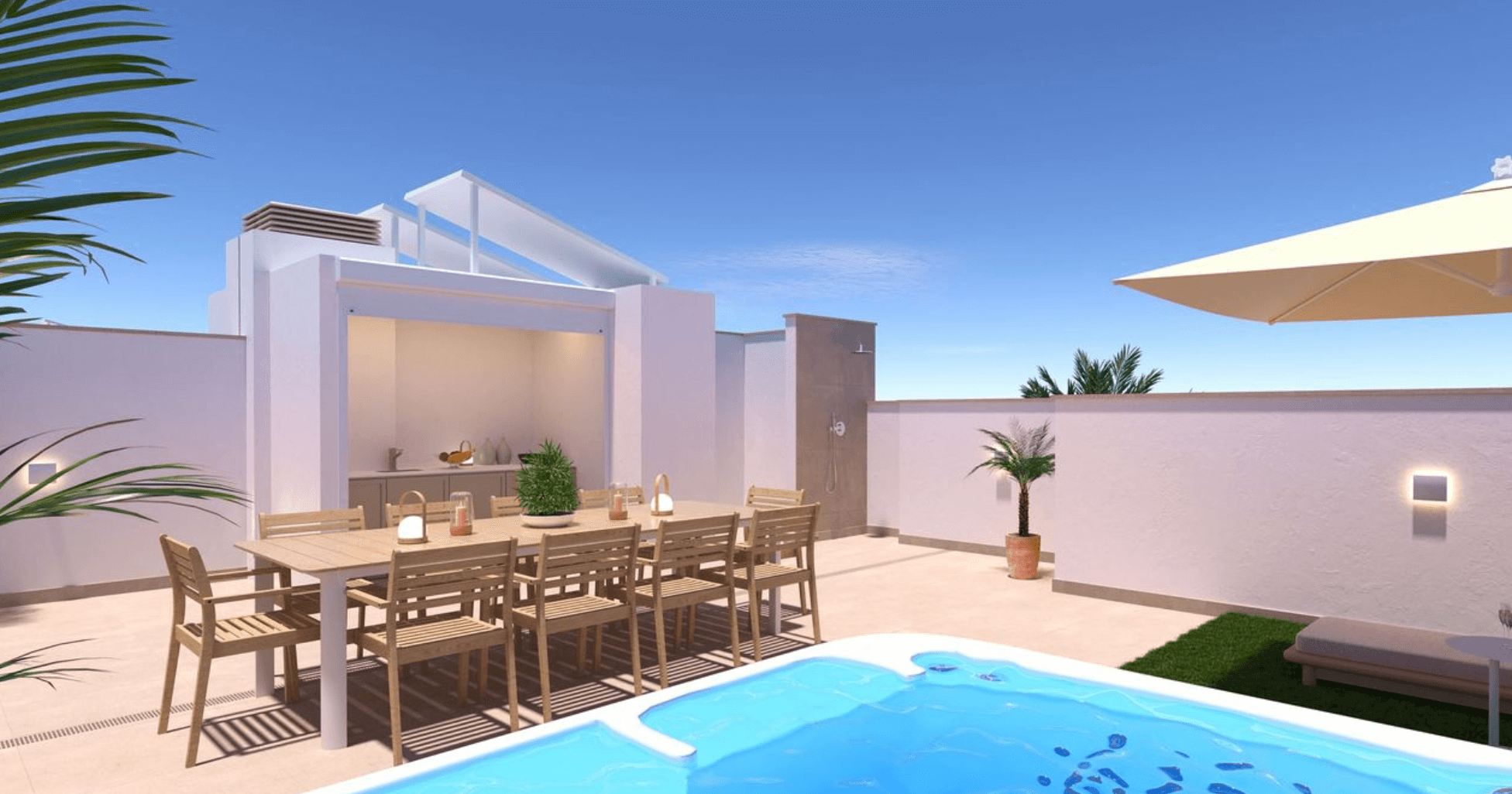 Et moderne boligkompleks er ved at blive bygget i Torre de la Horadada, hvor hver eneste detalje er nøje overvejet for at kombinere hverdagens bekvemmeligheder med middelhavsstil. Du kan vælge mellem lejligheder i stueetagen med rummelige terrasser og lejligheder på anden sal med privat solarium og sommerkøkken – det perfekte sted at tilbringe tid udendørs.